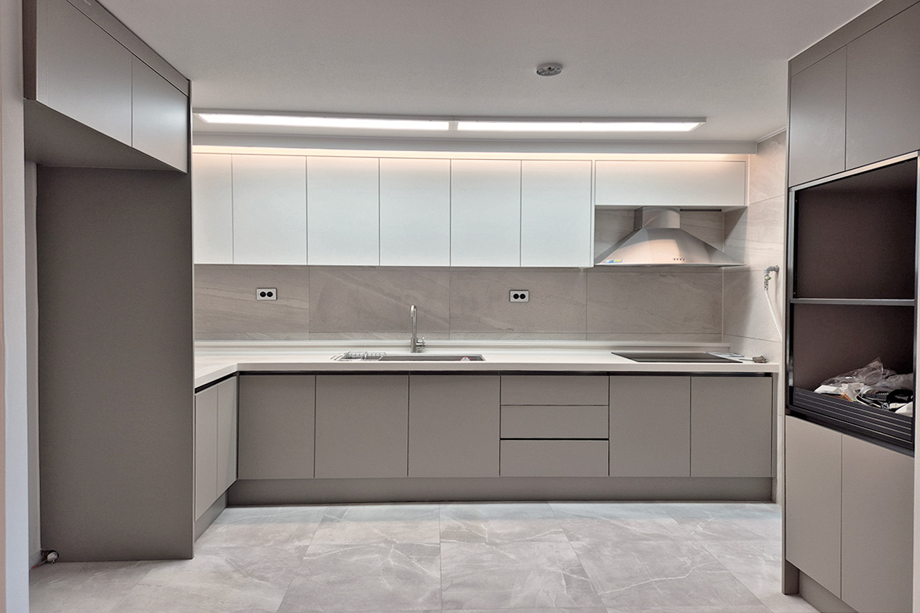 프로젝트: 가경동 푸르지오아파트 인테리어공사 AREA: 156,62㎡(47py) TYPE: 주거공간 -Apartment MATERIAL: 바닥-장판, 벽-도배, 가구, 타일 Category: 주거공간 Date: 2025-08-28 Share: