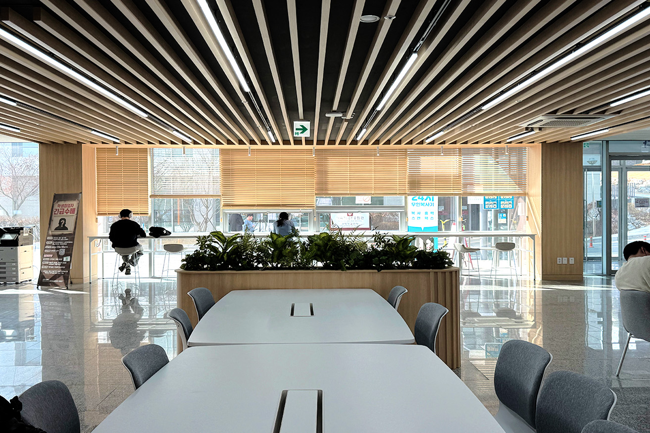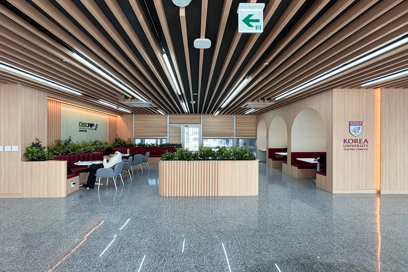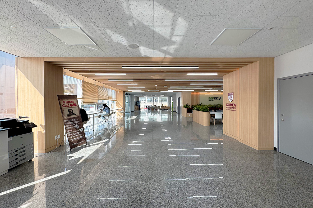 프로젝트: 고려대 조치원캠퍼스 산학협력단 DSC 공유대학 라운지 구축공사 AREA: 179.51㎡(54py) TYPE: 교육공간-University MATERIAL: 바닥-타일, 벽-도장,필름, 가구 Category: 사무 교육공간 Date: 2025-08-22 Share: