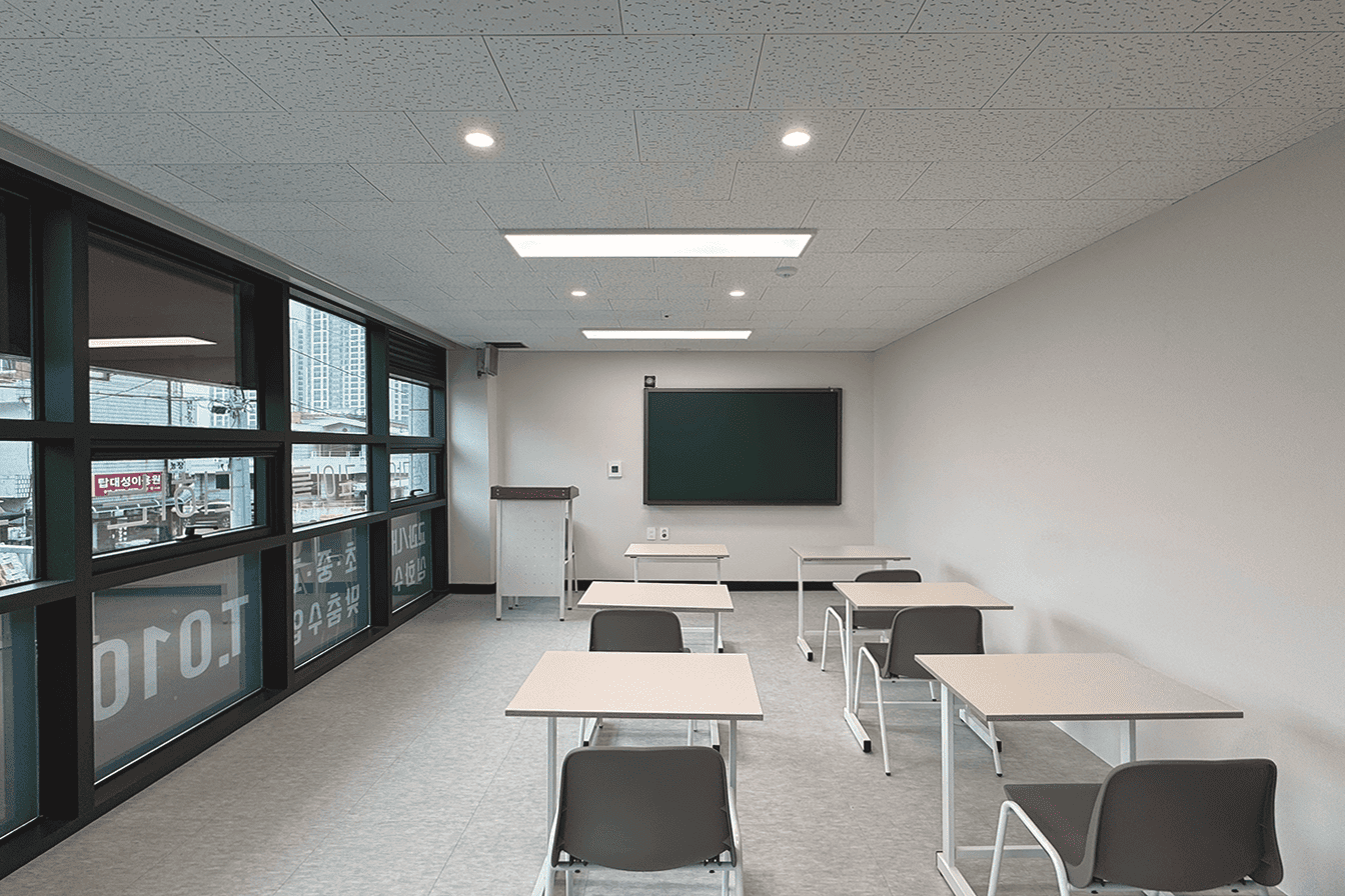 프로젝트: 교습소 인테리어 공사 AREA: 46.58㎡(14PY) TYPE: 교육공간-Academy MATERIAL: 천정-텍스,바닥-데코타일, 벽-도장, 필름, 가구 Category: 상업공간 Date: 2026-04-01 Share: