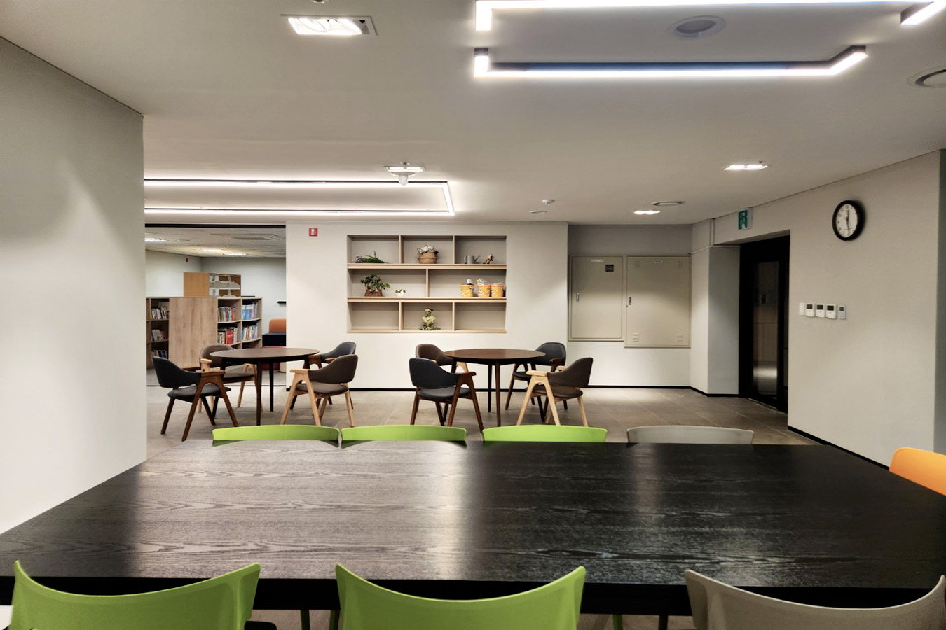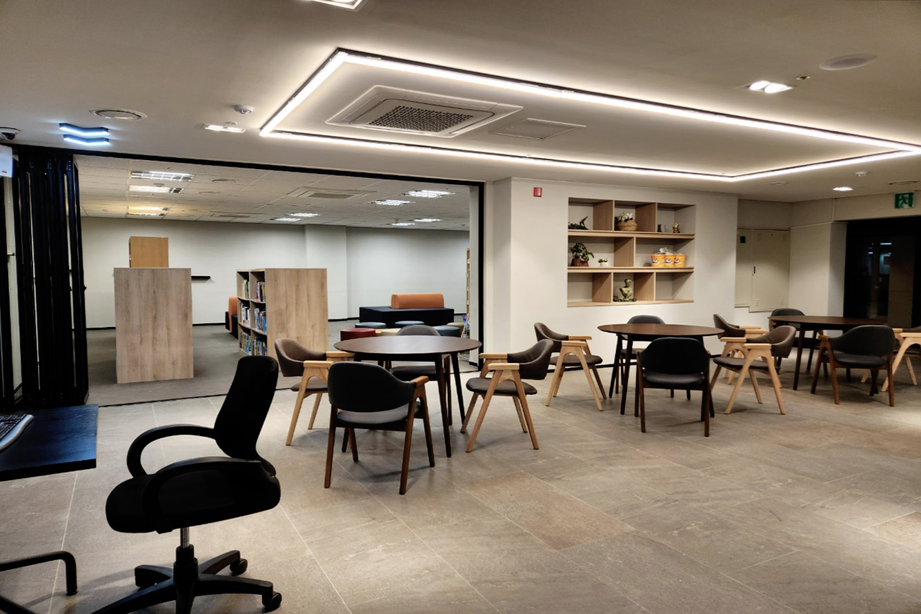프로젝트: 대전 이편한세상 둔산아파트 북카페 리모델링공사 AREA: - TYPE: 상업공간-Cafe MATERIAL: 바닥-데코타일, 벽-도배, 도장, 필름, 가구, 타일 Category: 상업공간 Date: 2025-08-27 Share: