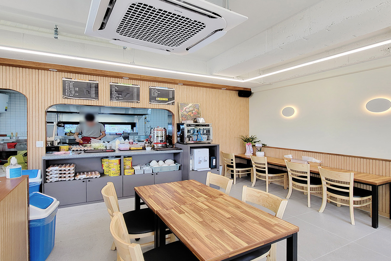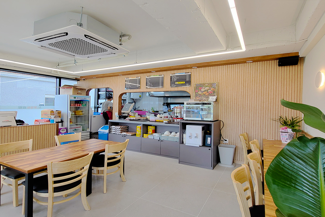 프로젝트: 동남 분식집 인테리어공사 AREA: 31.64㎡(9py) TYPE: 상업공간-Restaurant MATERIAL: 바닥-타일, 벽-도배, 도장, 필름, 가구, 타일 Category: 상업공간 Date: 2025-08-27 Share: