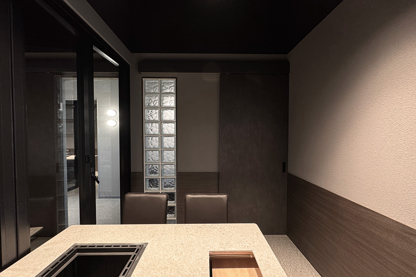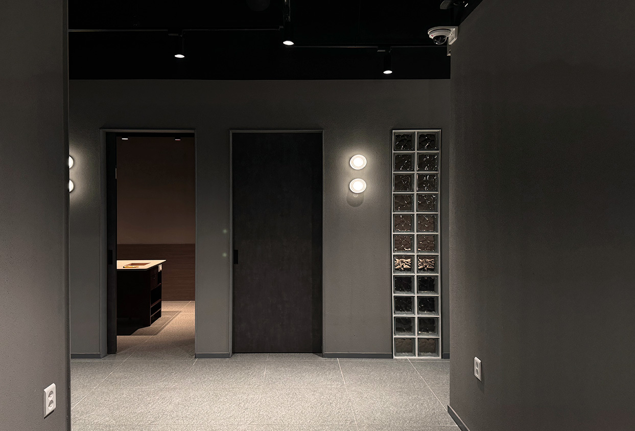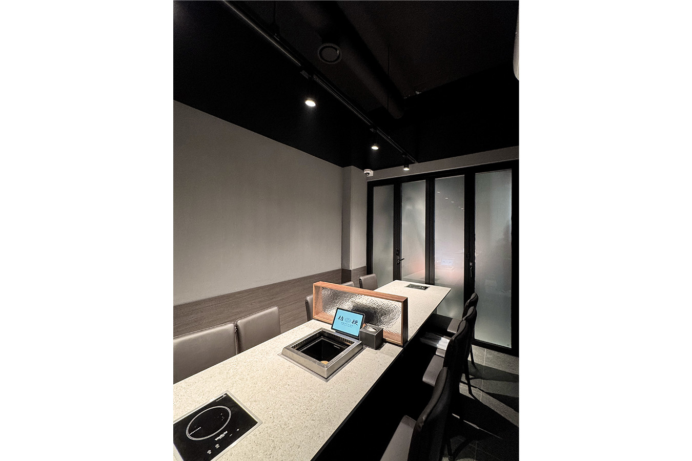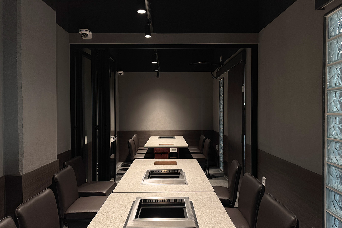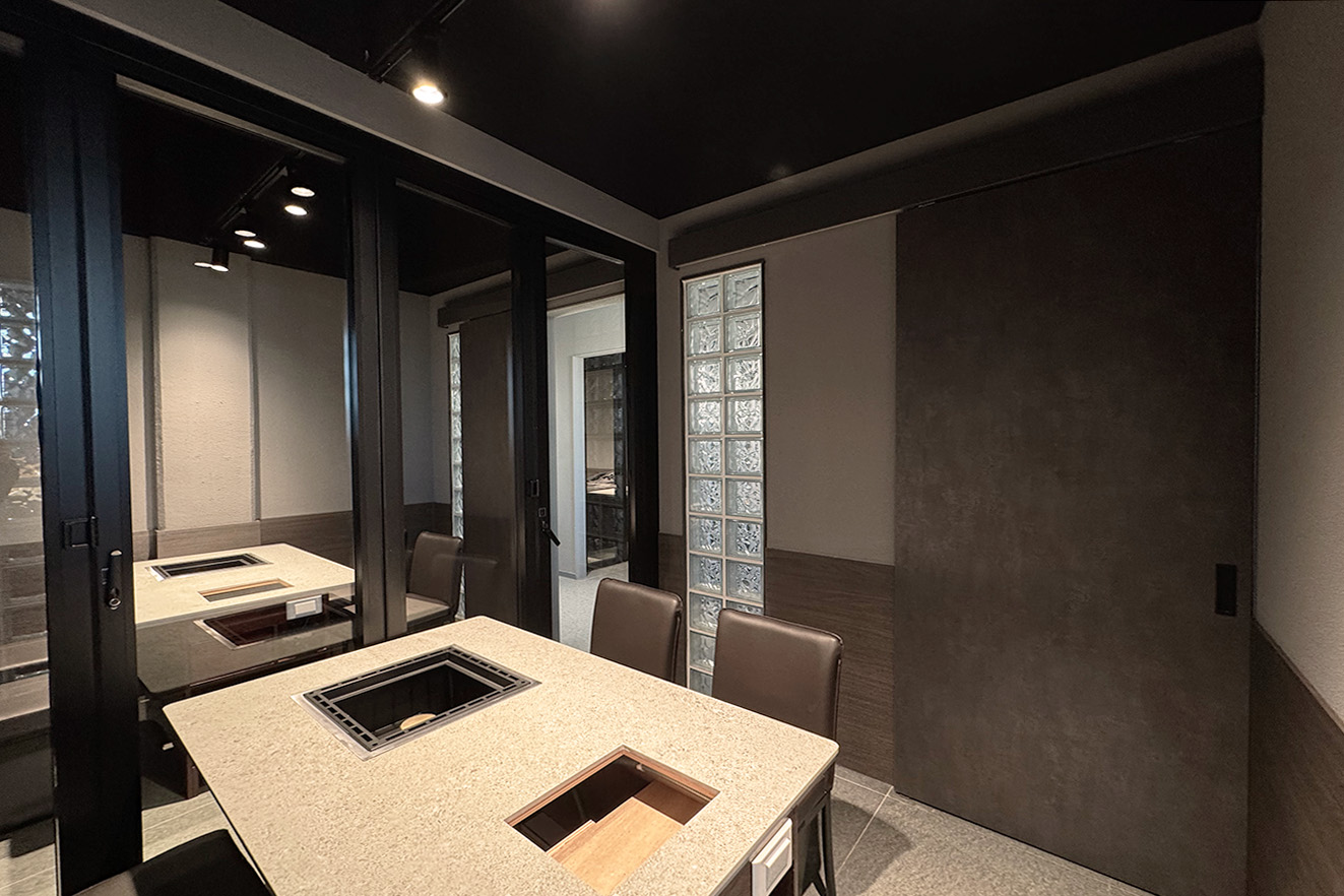 프로젝트: 복대동 소고기집 인테리어공사 AREA: 158.97㎡(48PY) TYPE: 상업공간-Restaurant MATERIAL: 바닥-타일, 벽-도장, 가구, 타일,유리블럭,필름 Category: 상업공간 Date: 2025-12-09 Share: