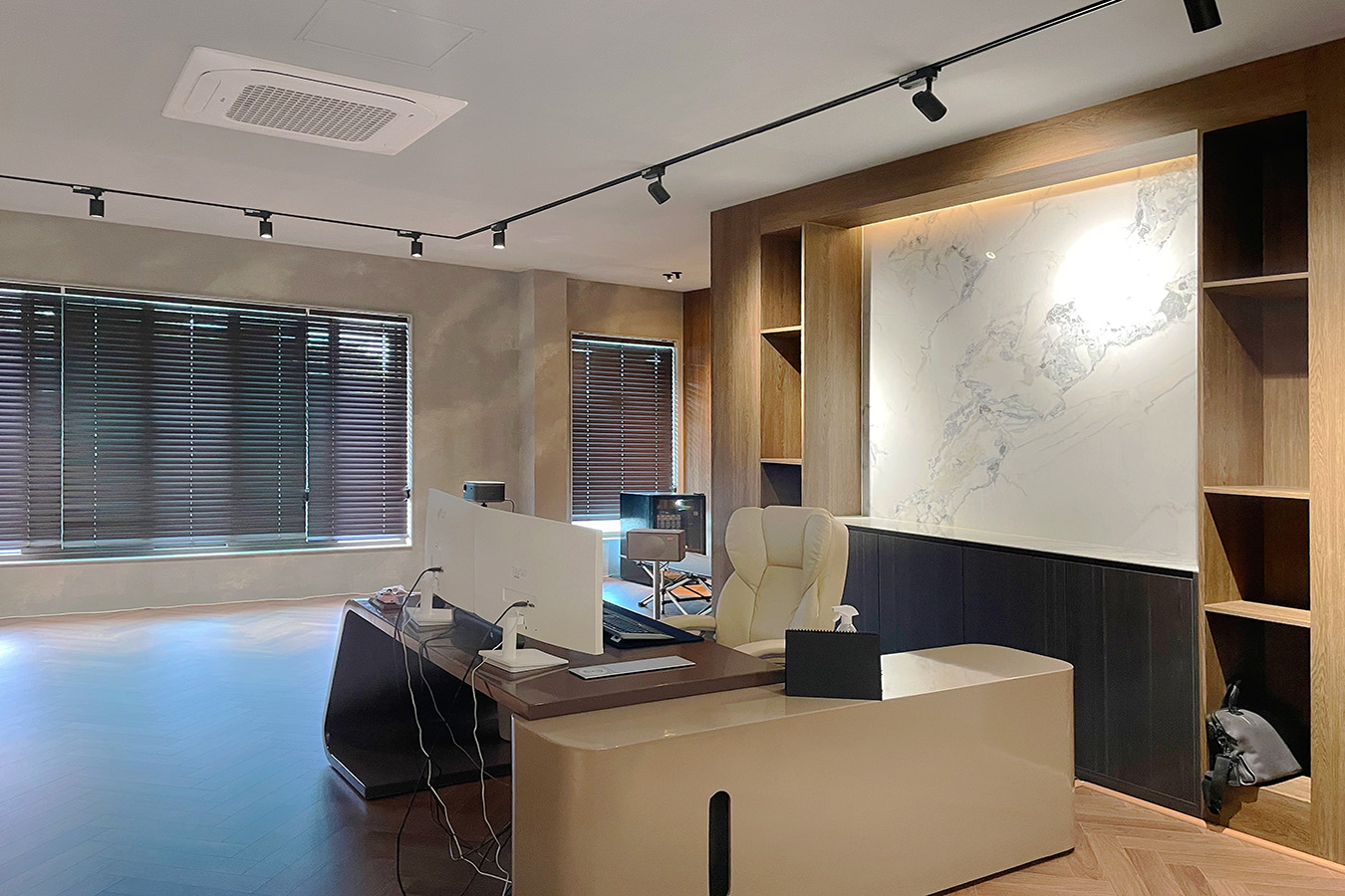 프로젝트: 사무실 인테리어공사 AREA: - TYPE: 사무공간-Office MATERIAL: 바닥-마루, 벽-도배,필름, 가구 Category: 사무 교육공간 Date: 2025-08-21 Share: