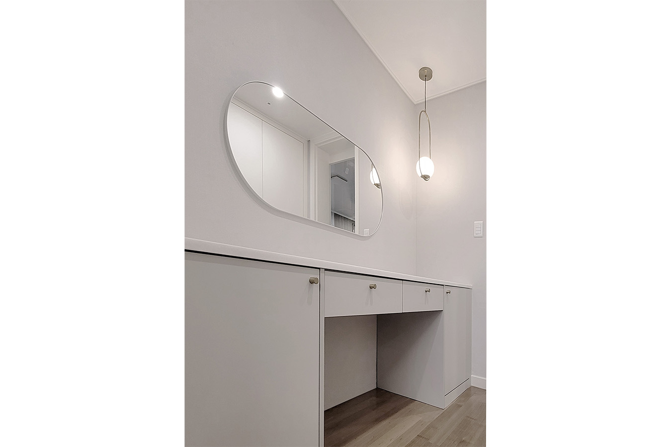 프로젝트: 사직동 두산위브더제니스 인테리어공사 AREA: 162.42㎡(49py) TYPE: 주거공간-Apartment MATERIAL: 바닥-, 벽-도배, 필름, 가구, 타일 Category: 주거공간 Date: 2025-08-28 Share: