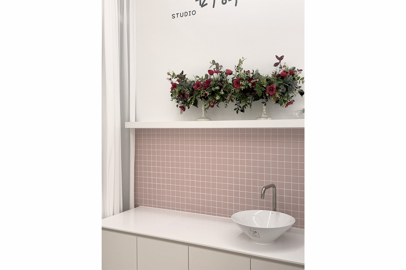 프로젝트: 세종 나성동 스튜디오 인테리어공사 AREA: 90.36㎡(27py) TYPE: 상업공간-Photo studio MATERIAL: 바닥-에폭시, 벽-도장, 가구, 타일 Category: 상업공간 Date: 2025-08-28 Share: