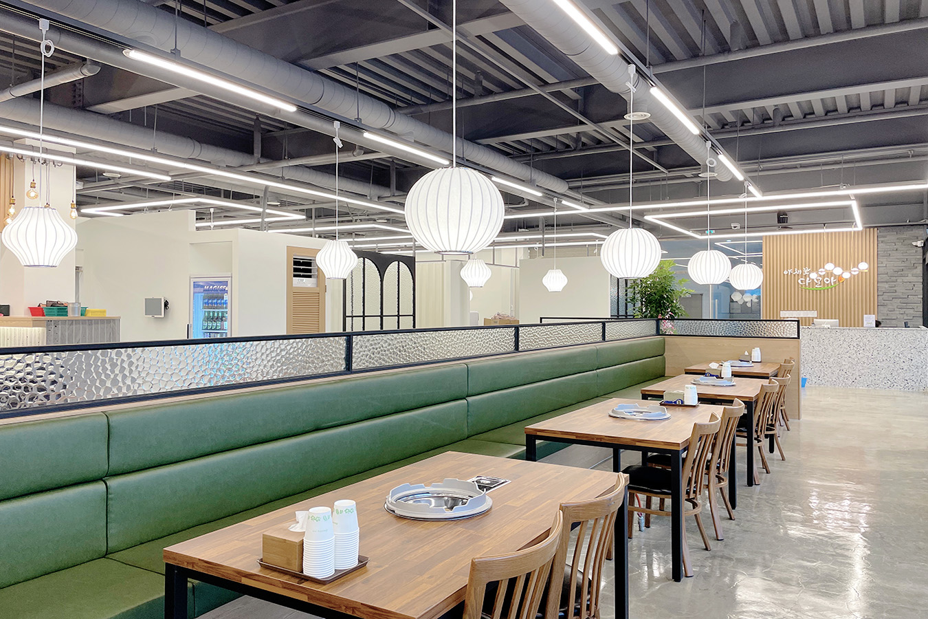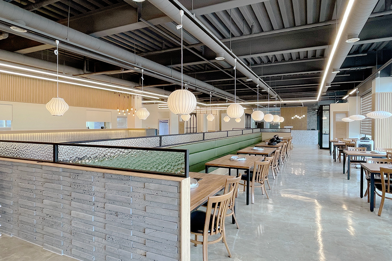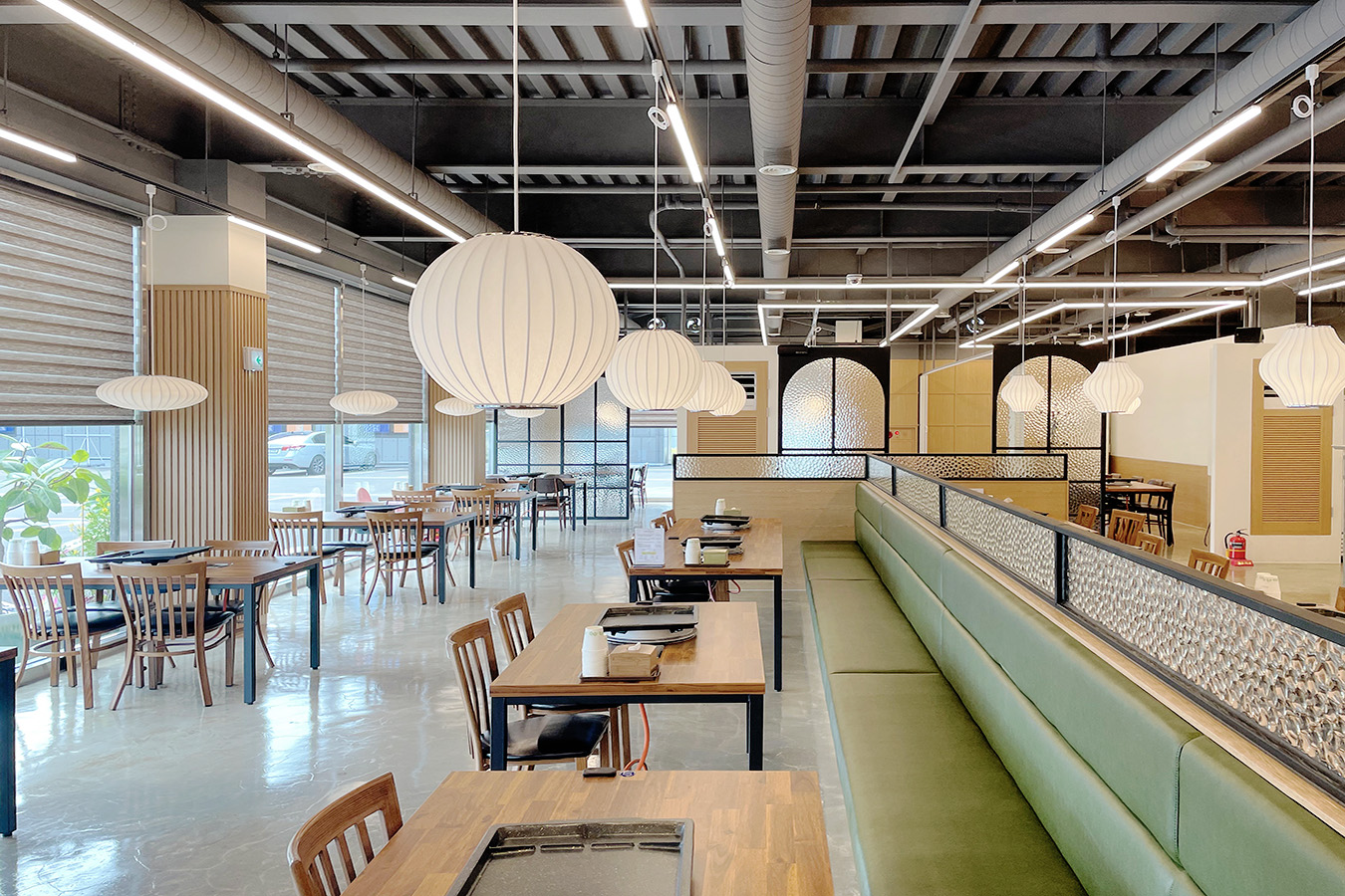 프로젝트: 야채꽃다모아 음식점 인테리어공사 AREA: 399.40㎡(120py) TYPE: 상업공간-Restaurant MATERIAL: 바닥-에폭시, 벽-도배, 도장, 필름, 가구, 타일 Category: 상업공간 Date: 2025-08-27 Share: