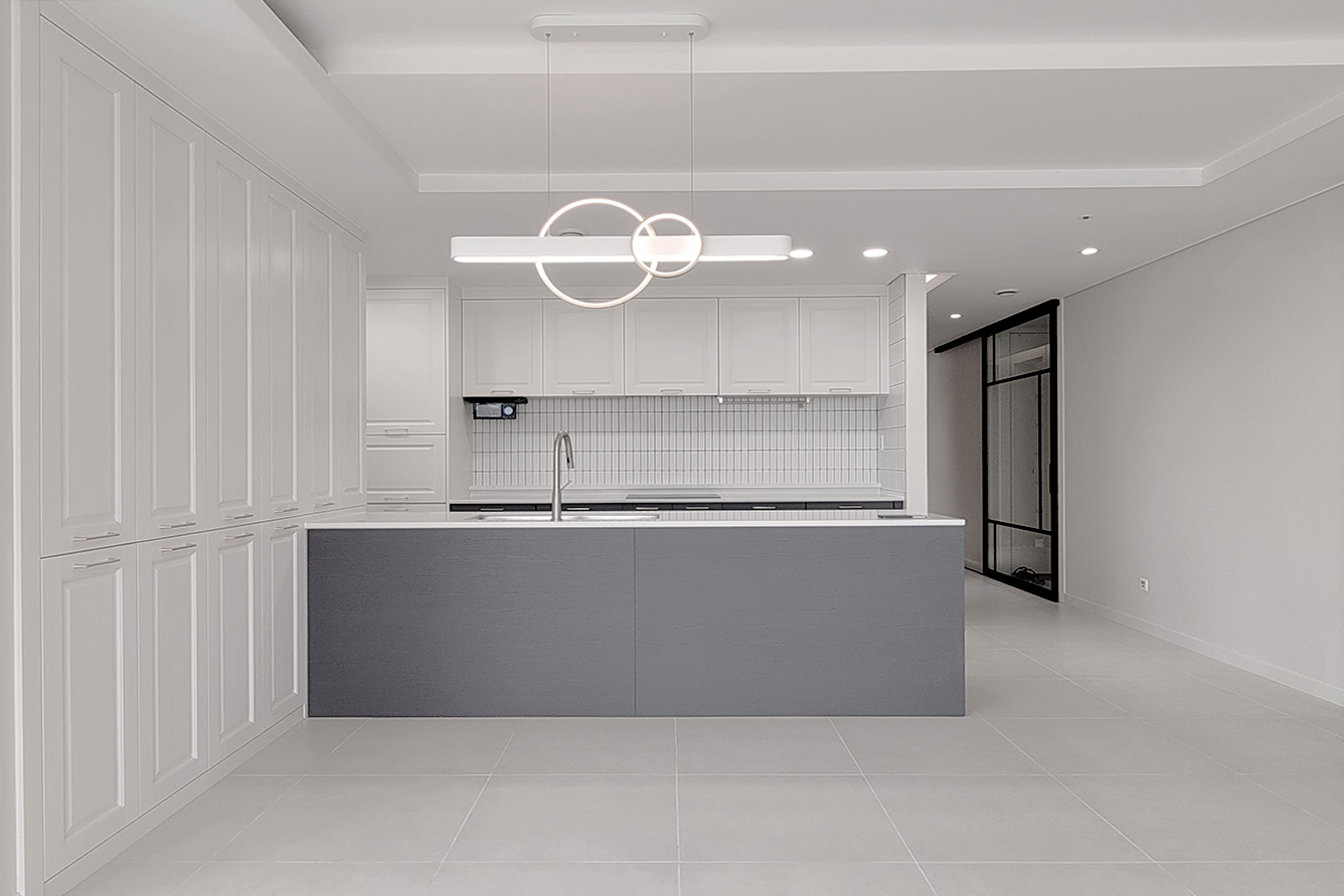 프로젝트: 율량동 대원칸타빌 인테리어공사 AREA: 109.4㎡(33py) TYPE: 주거공간-Apartment MATERIAL: 바닥-타일, 벽-도배, 가구, 타일 Category: 주거공간 Date: 2025-08-27 Share: