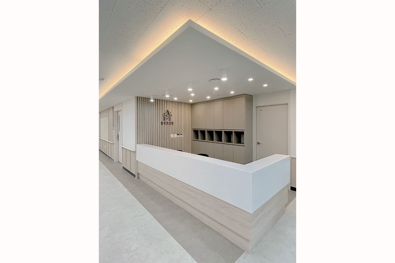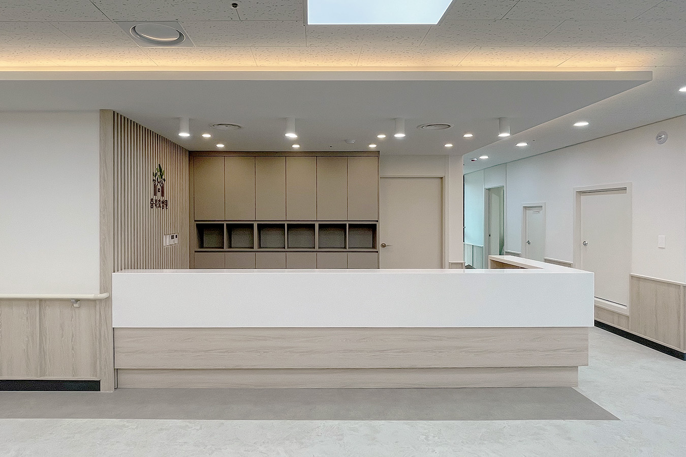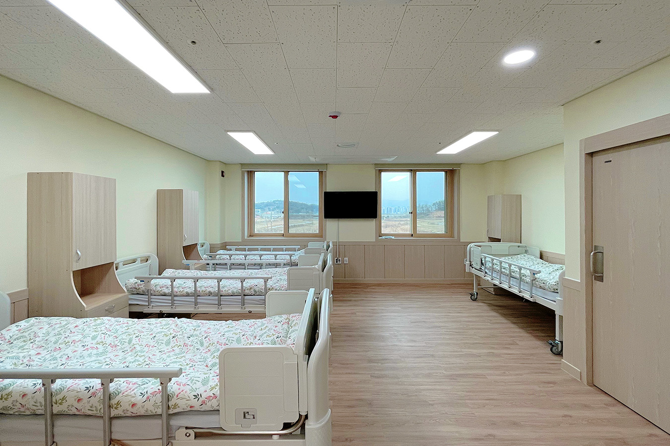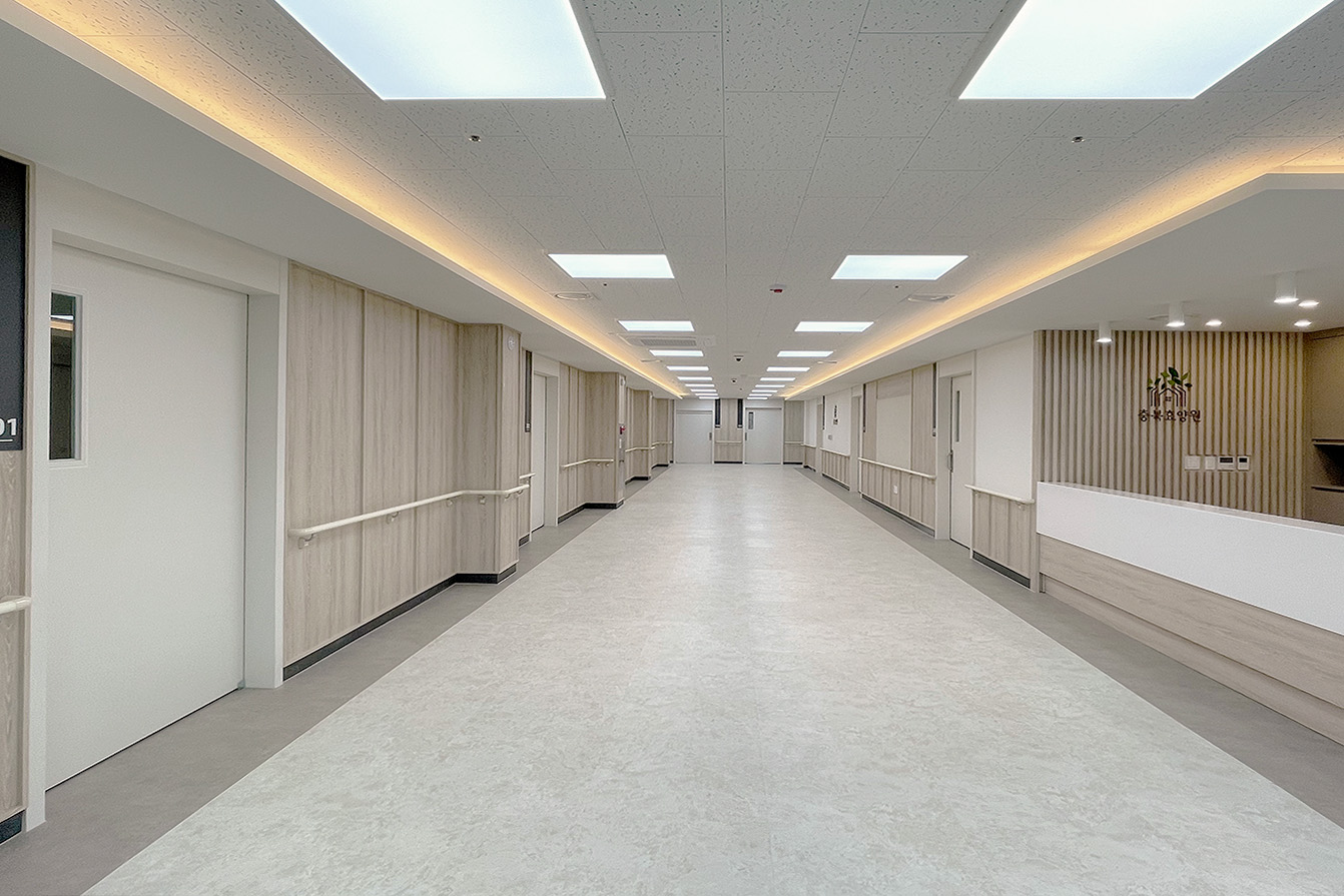 프로젝트: 충북요양원 인테리어공사 AREA: 1154.92㎡(349.36py) TYPE: 의료공간-요양원 MATERIAL: 바닥-데코타일, 벽-도배, 도장, 필름, 가구, 타일 Category: 의료공간 Date: 2025-08-27 Share: