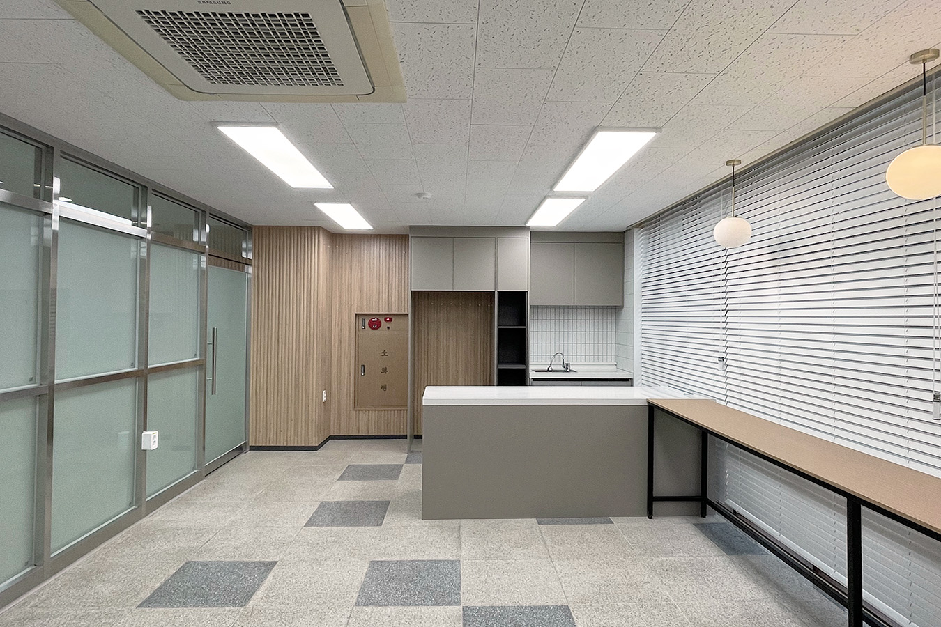 프로젝트: 충북체육고등학교 교사휴게실 부분공사 AREA: 32.80㎡(9PY) TYPE: 교육공간-High school MATERIAL: 바닥-데코타일, 벽-필름,가구,타일 Category: 사무 교육공간 Date: 2025-12-03 Share: