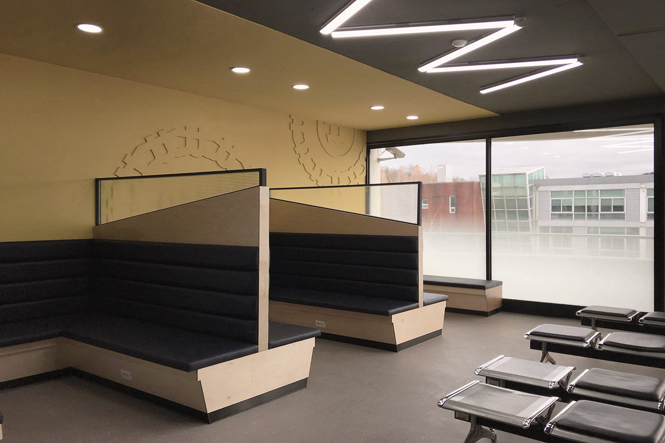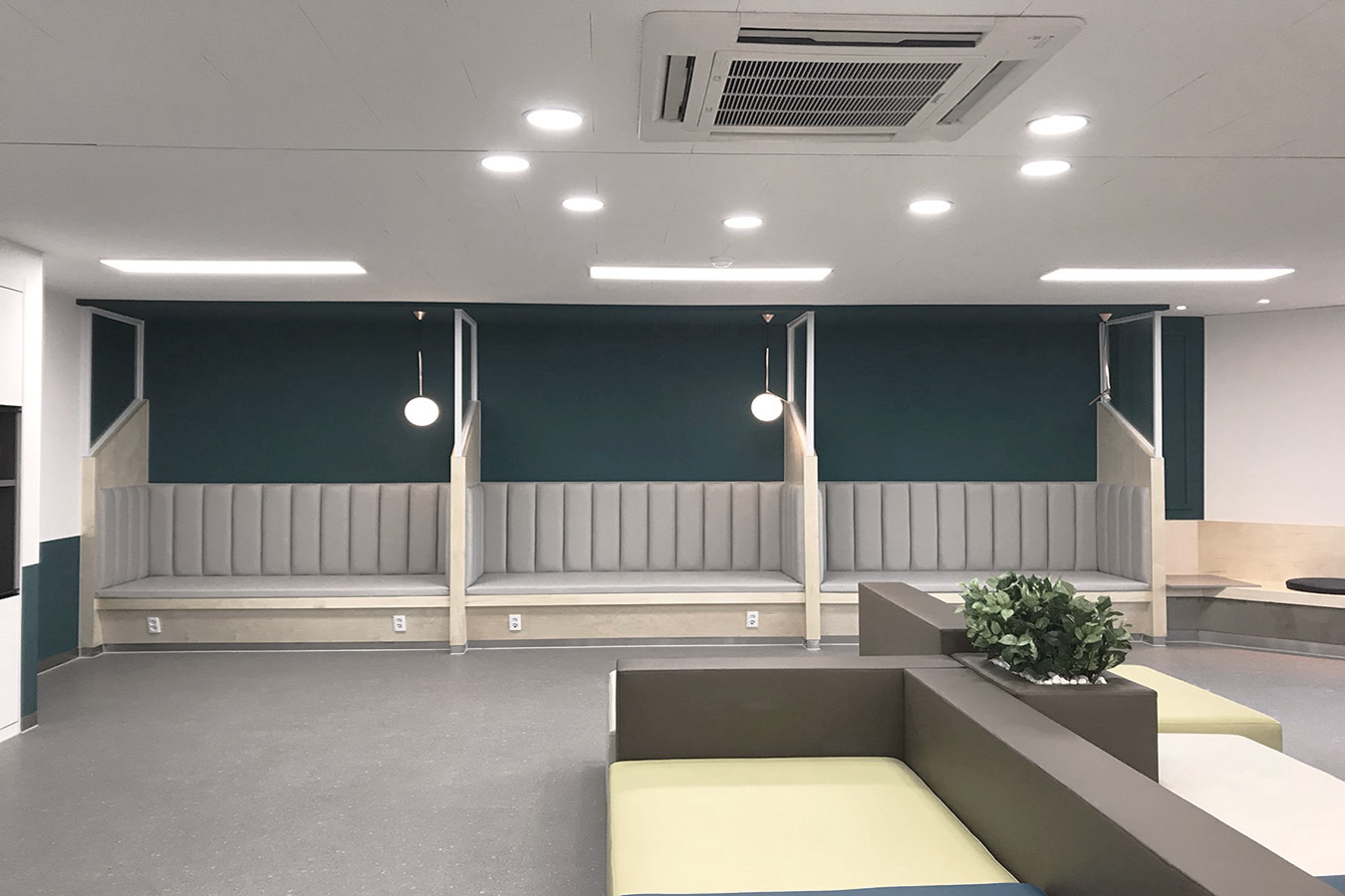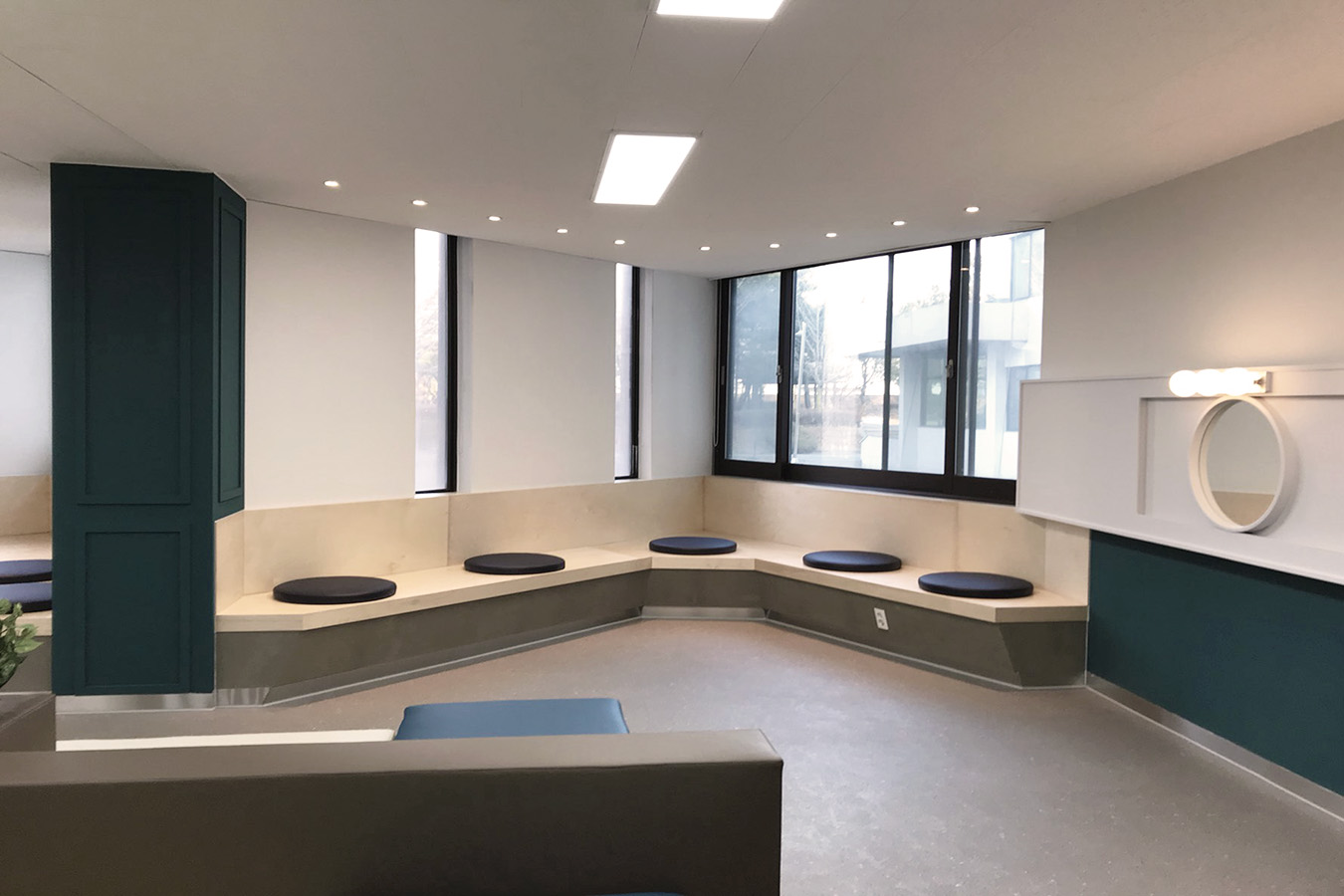 프로젝트: 충청대 휴게실 인테리어공사 AREA: 143.76㎡(43py) TYPE: 교육공간-University MATERIAL: 바닥-데코타일, 벽-도장,가구 Category: 사무 교육공간 Date: 2025-08-22 Share: