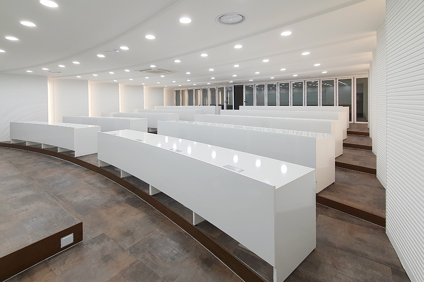 프로젝트: 한국영상대 사업 창의관 3층 강의실 구축공사 AREA: 174.08㎡(52py) TYPE: 교육공간-University MATERIAL: 바닥- SCP, 벽-도장, 필름, 가구 Category: 사무 교육공간 Date: 2025-08-22 Share: