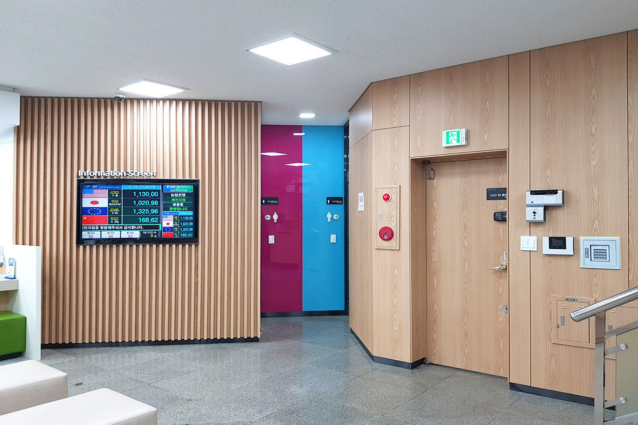프로젝트: NH농협은행 제천 인테리어공사 AREA: - TYPE: 사무공간-Bank MATERIAL: 바닥-타일, 벽-도장, 가구, 타일 Category: 사무 교육공간 Date: 2025-08-21 Share: